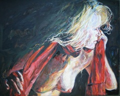 It is not possible to feel apathetic when standing next to passion. I don't paint landscapes to hang above someone's couch, paintings meant to be a resting place for the mind? I want to paint feelings that one cannot dismiss. I hope to stir up feelings that overwhelm hidden agendas within the viewer as well as myself. It is not my goal to feel nothing but a sunny day or peacefulness, shiny trinkets that rest on walls that can be walked away from. I want to paint women who feel something. I paint myself as I define it and revel in the fact that I am made whole by my own journey of introspection.